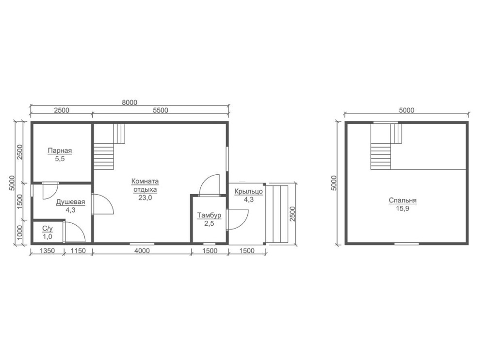 | Двери | Входная- металлическая, утеплённая (Россия). Межкомнатные- филёнчатые. В парную- клиновая (банная). | Отсутствуют. |