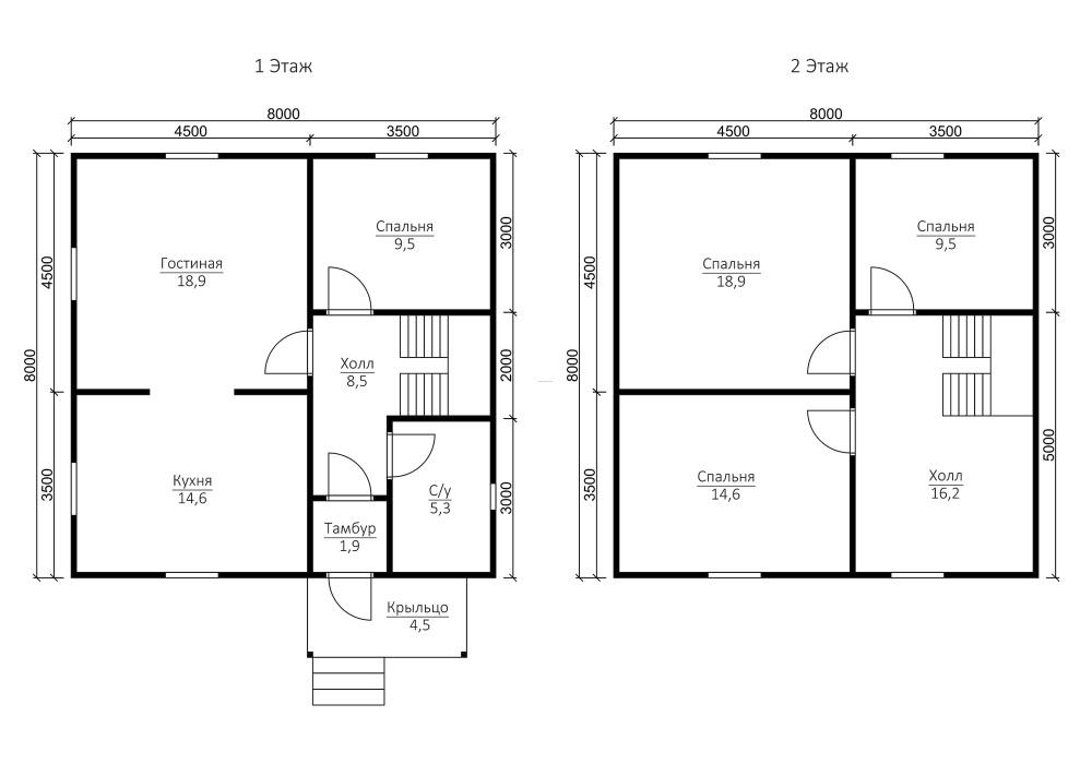 Сруб с мансардой: 1-ый этаж- 2,5 м. (18 венцов) 2-ой этаж (мансарда)- 2,4 м. Сруб в полтора и два этажа: 1-ый этаж 2,5 м ±4 см. (18 венцов) 2-ой этаж 2,5 м ±4 см. каркасные аттиковые стены (боковые) высотой 1,5 м. в полутораэтажном доме 2,5 м ±4 см (поднят брусом на 18 венцов) в двухэтажном доме. |