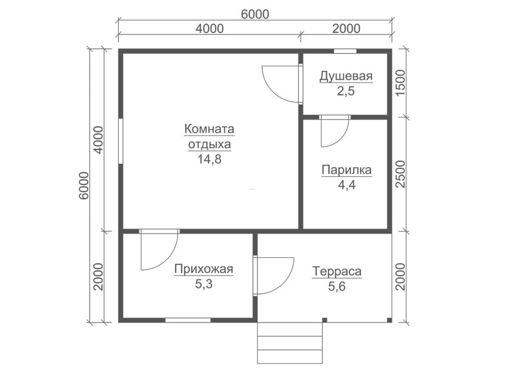 | Двери | Входная- металлическая, утеплённая (Россия). Межкомнатные- филёнчатые. В душевую/парную- клиновые (банные). | |