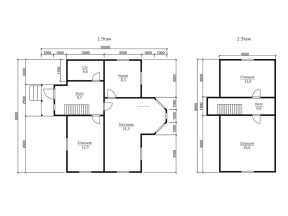 Дом с мансардой: 1-ый этаж- 2,5 м. 2-ой этаж (мансарда)- 2,3 м. Дом в полтора и два этажа: 1-ый этаж 2,5 м. 2-ой этаж 2,4 м. в полутораэтажном доме 2,5 м. в двухэтажном доме. |