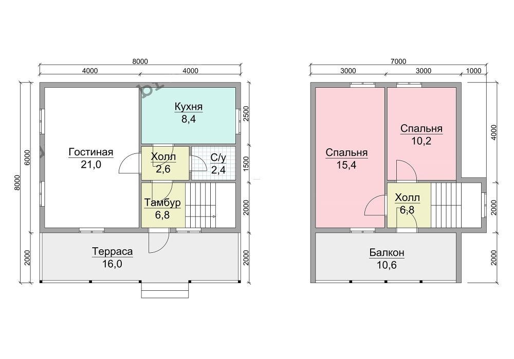 | Терраса/балкон (при наличии) | Устанавливаются опорные столбы из строганного бруса камерной сушки 140х140 мм. | |